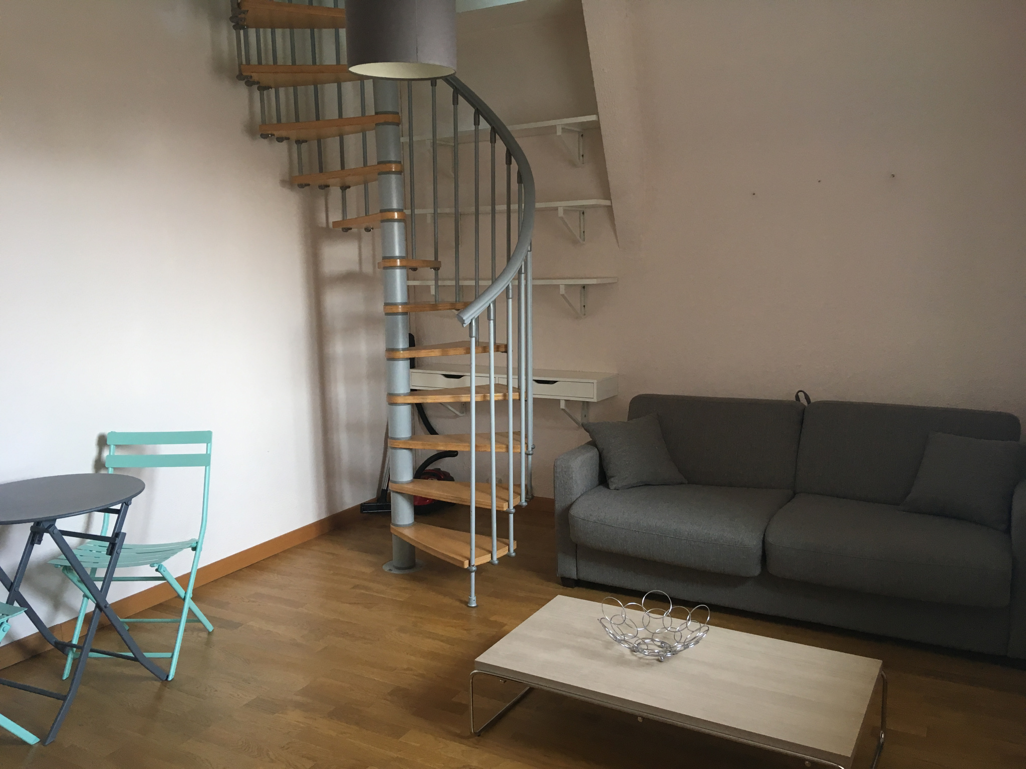 Situé au 2ème et dernier étage d'une petite copropriété il offre une belle pièce de vie donnant sur cour, une kitchenette équipée, une salle de bains avec WC. A l'étage : une grande chambre avec rangements.